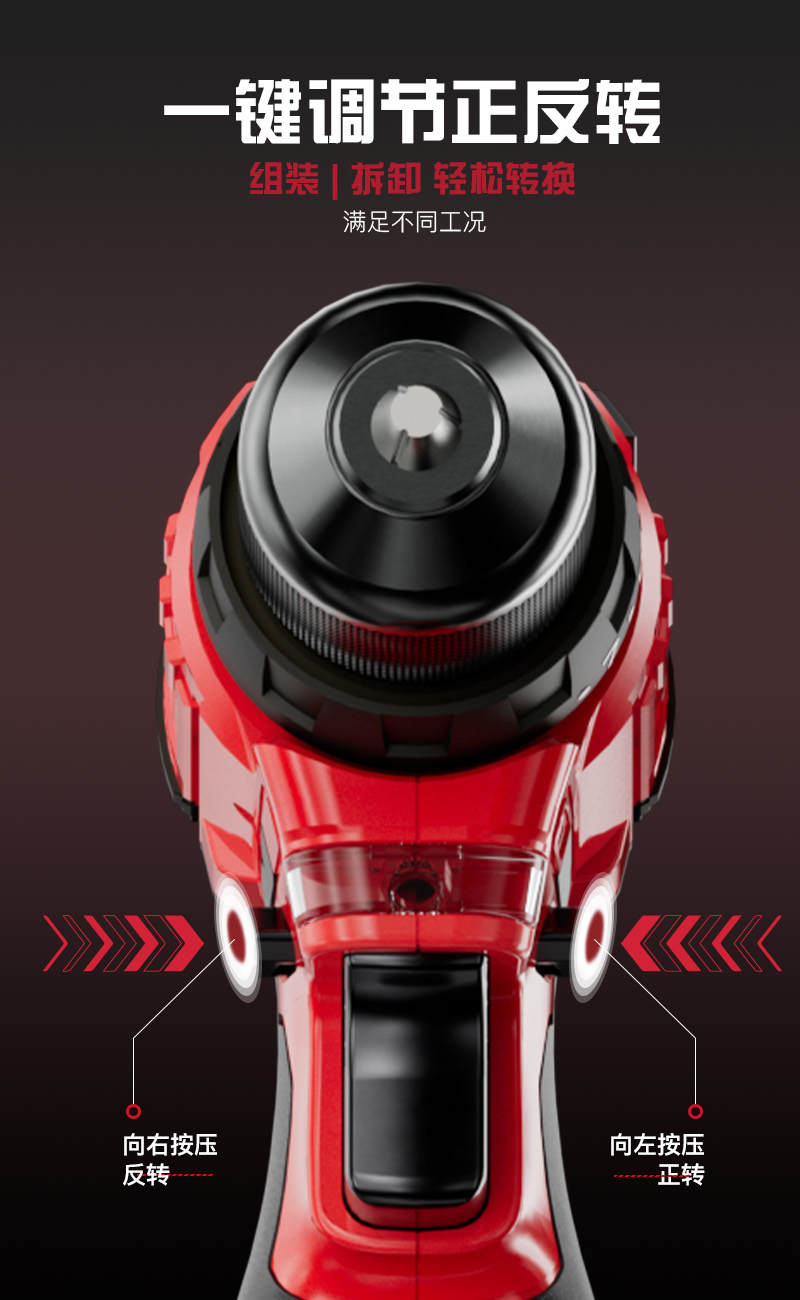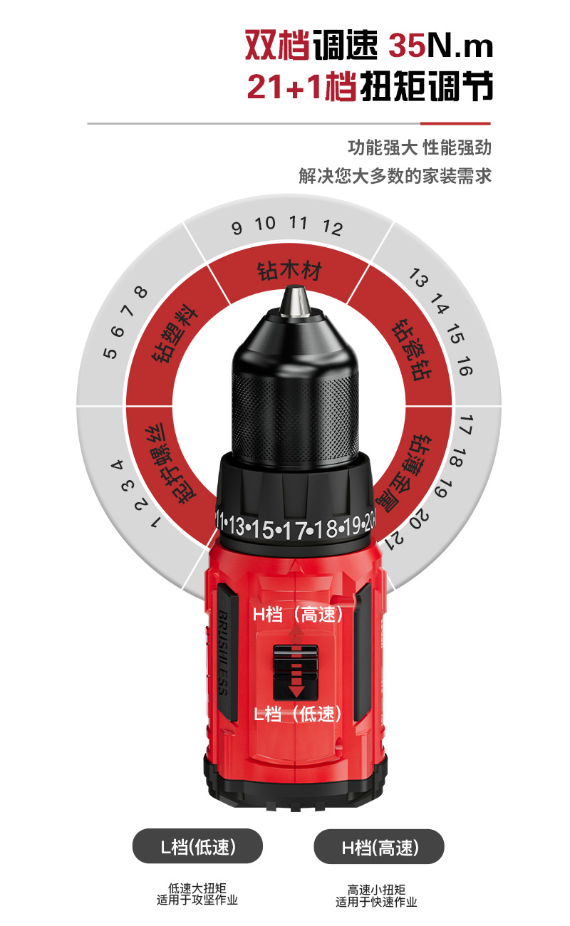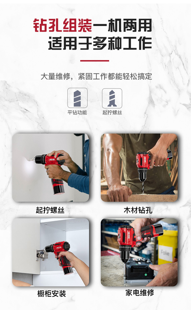 适用场景:平钻钻孔/起拧螺丝 空载转速:0-400/0-1350转/分钟